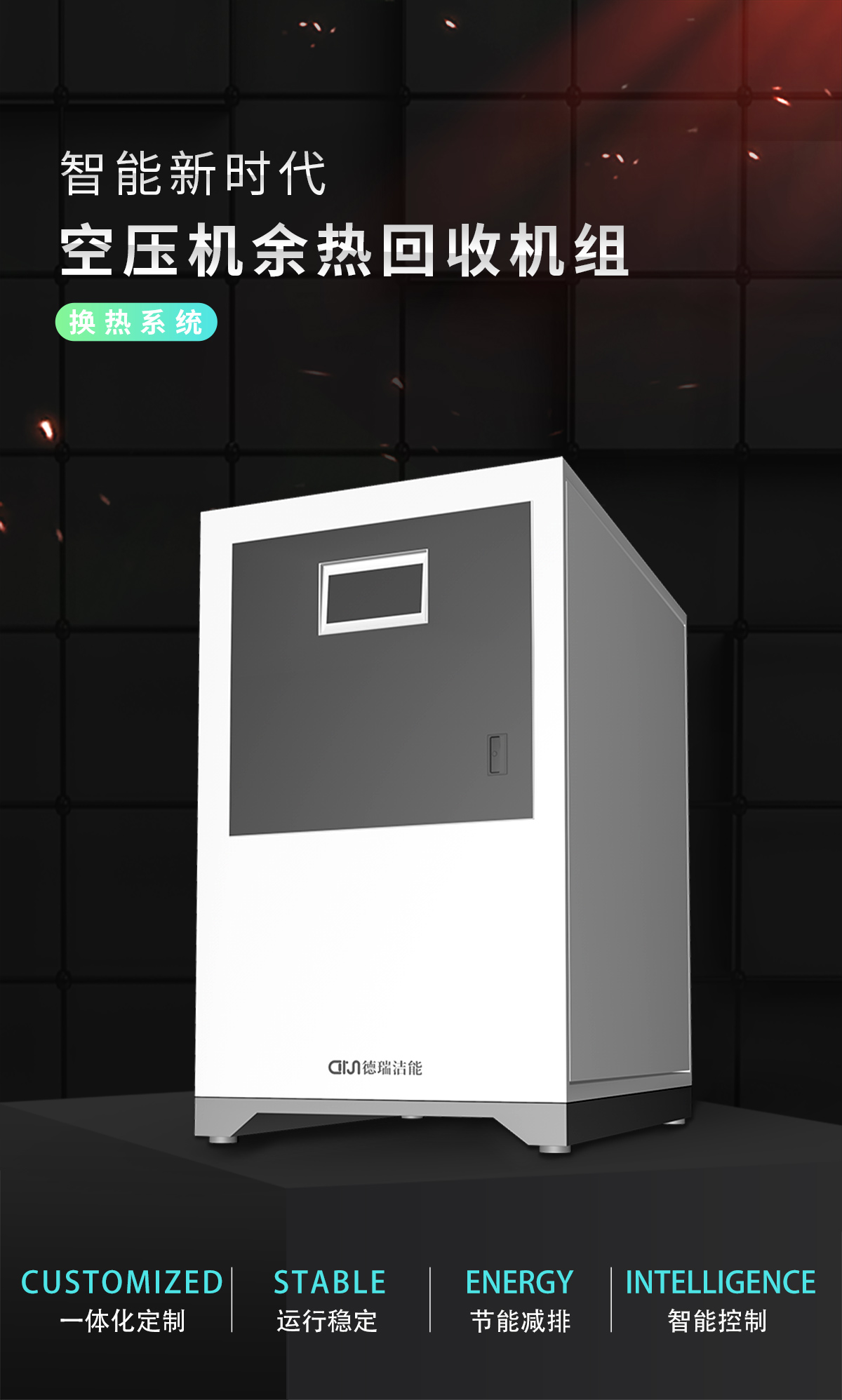 德瑞洁能空压机余热回收机组是集成螺旋缠绕管式换热器、循环泵、补水泵、温度计、压力表、各种传感器、二次侧管路、阀门及自控于一体的成套的区域供热设备,标准化、模块化的设计,统筹兼顾,为用户量身定做的换热系统解决方案。